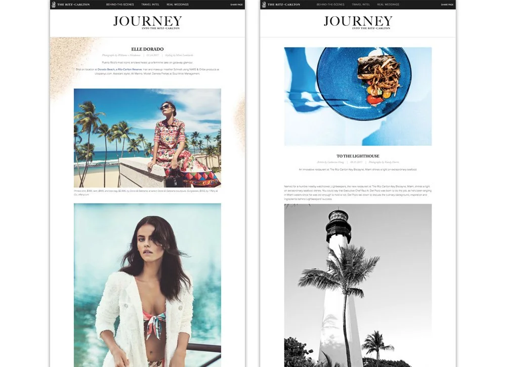 The luxury customer of The Ritz-Carlton Hotel has a discerning sensibility for the finer things in life, but also new ways to consume travel content. The magazine was delivered in-room and directly to reward members. This content also was published digitally on the Journey to the Ritz-Carlton site and promoted socially as well.